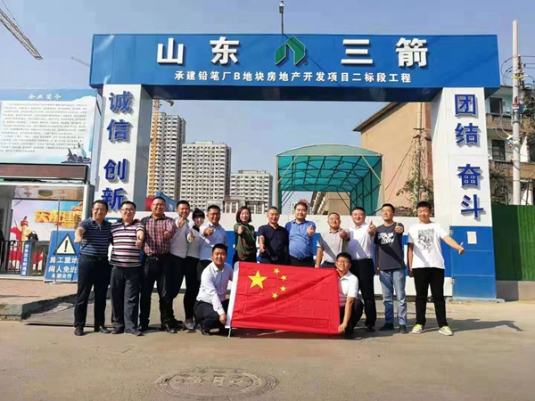 國慶期間,三箭股份公司領(lǐng)導(dǎo)班子成員及各項目公司經(jīng)理兵分兩路,先后到仁和家園、馨陽嘉苑項目、天馬相城、嵐橋大廈、糧食局食品產(chǎn)業(yè)園、齊魯工業(yè)大學(xué)實訓(xùn)基地、和平廣場、瑞福廣場等在建重點工程進(jìn)行走訪慰問,對節(jié)日期間仍堅守工作崗位的一線員工致以節(jié)日的問候和祝福。走訪前,為慶祝中華人民共和國成立70周年,股份公司領(lǐng)導(dǎo)班子成員及各項目公司經(jīng)理開展了“我與國旗合個影”活動,發(fā)自內(nèi)心地祝福偉大祖國國富民強(qiáng)、繁榮昌盛,集團(tuán)公司蓬勃發(fā)展、再創(chuàng)輝煌。走訪期間,大家在項目上集中觀看了國慶閱兵式,并紛紛表示為閱兵式的豪邁盛大而震撼,為祖國強(qiáng)大而驕傲,抒發(fā)了愛國情懷。走訪期間,公司領(lǐng)導(dǎo)重點要求抓住近期這段建筑黃金季節(jié),合理安排工序,科學(xué)組織生產(chǎn),提前考慮揚塵、冬季施工、材料供應(yīng)不及時等不利因素,確保工程按照計劃順利完成。